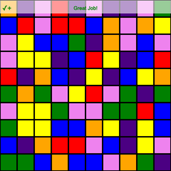 这确保了每一行方块总是从舞台的左侧开始! xcord的值必须在内部循环再次开始之前重置,否则每个新行都从前一行末尾的正方形的 x 坐标开始!