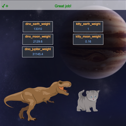STEP 14: Now let's show how much the T-Rex would weigh on Jupiter! Use the moon code as a guide.