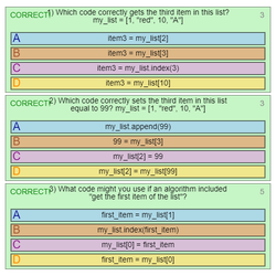 CHECK FOR UNDERSTANDING: Let's review list indexing and how to get and set a specific item in a list.