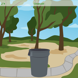 STEP 1: Let's set up the stage for our game. The goal will be to click on falling trash so that it goes into the trashcan!