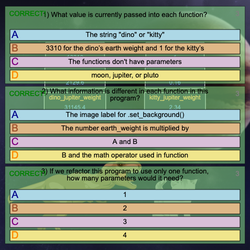 - Usa el código en el editor para responder las preguntas. ¡Mira de cerca las funciones!