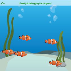 • Depure el programa colocando los comandos aleatorios dentro del ciclo, antes de que se cree el sprite.