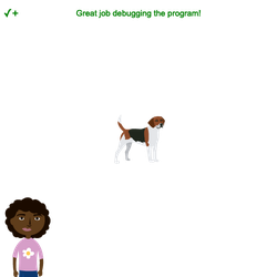 • Debug the program so that the "dog" image shows on the stage.