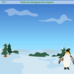- Click Run and watch the stage to see what's wrong. Oops! The present should disappear, not the penguin!