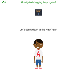 • Click Run and look at the stage to see what's wrong. We can't see the timer count down!
