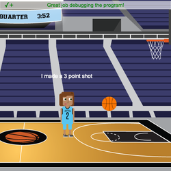 - Click Run and look at the stage to see what's wrong.The ball is supposed to go in the basket, not the player!