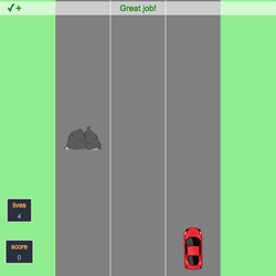 STEP 14: If we move the sprites down the road, it will appear that the car is moving up the road.