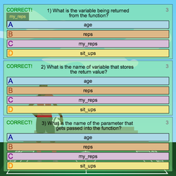 - Click Run and watch the stage. The sprite has to do sit ups based on her age.