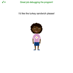 - Depura el programa para que la figura ordene comida utilizando un índice que está en rango.