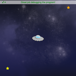 - Click Run and use the arrow keys to control the spaceship. Watch the stage to see what's wrong.