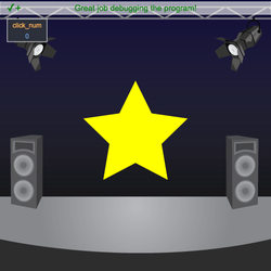 - Debug the program so that the click number increases by 1 each time you click on the star.