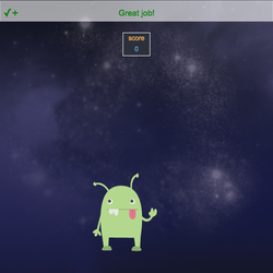• In , drag Global Variable inside your click event and change my_var to score.