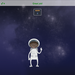 - Then, inside the [ ], change "fish" to "astronaut1" and change 0 to -100.