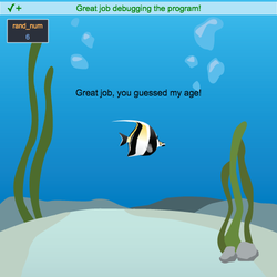 - Click Run and play the game to see what's wrong. The fish only responds after all three guesses!