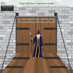- Test your if-statement by clicking Run until rand_answer equals 2. Tim should say "Outcome unclear. Ask again later."