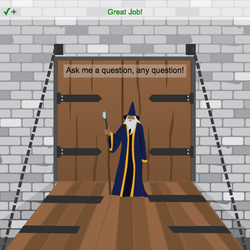 - Assign the .say() to the wizard by changing the variable name in front of .say() to from sprite to tim.