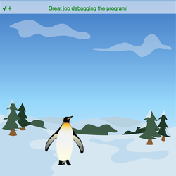 - Depura el programa para que el pingüino cruce el escenario cada 1 segundo.