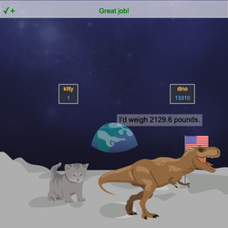 - Use a Say command to have the dino_sprite say how much it would weigh on the moon.