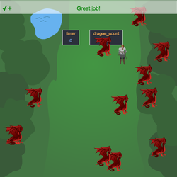 PASO 16: Ahora que tenemos acceso a nuestra variable de timer , debemos actualizar el tiempo mientras todavía hay dragones.