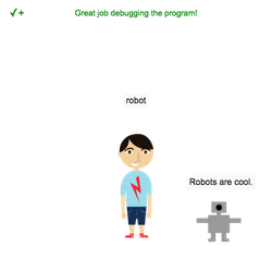 - Debug this program so that the program tests for "robot" correctly.