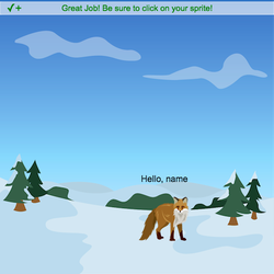 STEP 8: Let's add a special greeting to our program, so that when you click on the sprite, it says "hello."