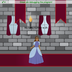 - Debug the program so that the princess tells us her favorite color and her lucky number.