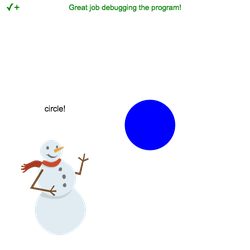 Challenge 3: Debug the program so that a blue circle appears on the stage if any only if you choose circle.