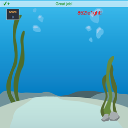 stage.set_background("underwater") score = 0 score_board = codesters.Display(score) weak_pws = ["password", "password123", "hello1", "snuffles", "123456"] strong_pws = ["GgbvTa581!@", "@Mjrc0olguy!", "007jmSB0nd!", "108turt!es762", "Avv3SoMe!305"] all_pws = weak_pws + strong_pws # text = codesters.Text("text", x, y, "color") password = codesters.Text("password", 100, 200, "red") def interval(): # add any other actions... rand_x = random.randint(-225, 225) rand_y = random.randint(-225, 225) rand_pw = random.choice(all_pws) stage.event_interval(interval, 2)